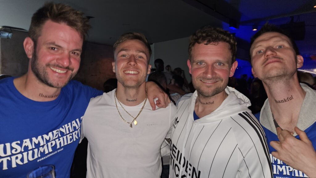 Ich danke allen, die mich dieses Jahr unterstützt und bereichert haben, die mir diese vielen Begegnungen und Momente geschenkt haben. Exemplarisch dafür steht der Berliner Irrsinn des Pokalfinals, als wir uns als Hommage an Arminia-Stürmer Grodowski „Thankful“ auf den Kehlkopf klebten. Thankful traf es schon damals und trifft es auch am letzten Tag des Jahres.